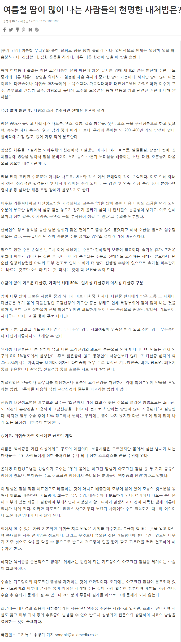 [ÄíŰ´º½º] ¿©¸§Ã¶ ¶¡ÀÌ ¸¹ÀÌ ³ª´Â »ç¶÷µéÀÇ Çö¸íÇÑ ´ëó¹ýÀº?